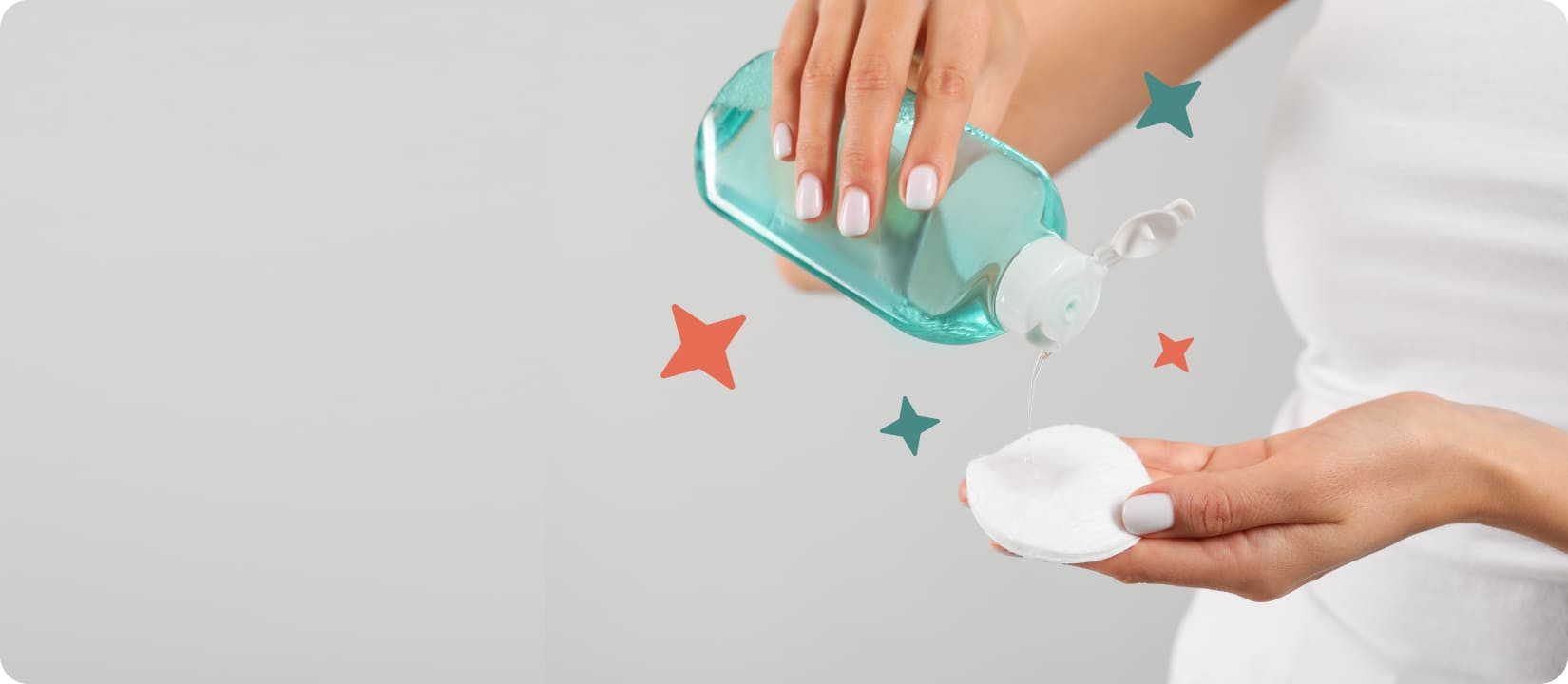 - Смочите ватный диск жидкостью и аккуратно проведите по коже без сильных нажимов, трения.