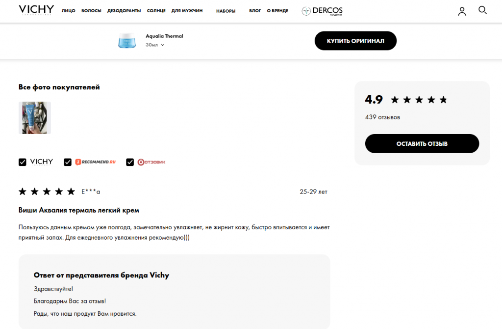 - 7 место: Vichy Aqualia Thermal