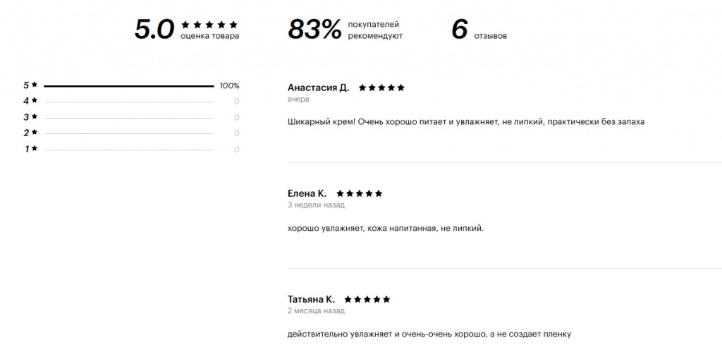 - Мгновенный эффект: плотная, но нежирная текстура буквально тает на коже, моментально снимая чувство стянутости и дискомфорта. Эффект заметен сразу после первого нанесения.